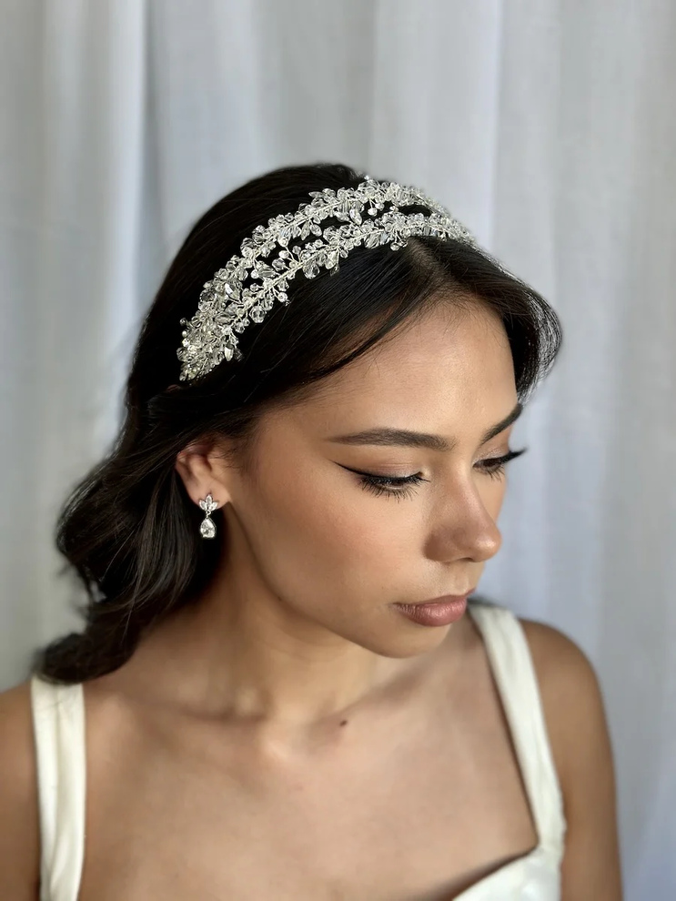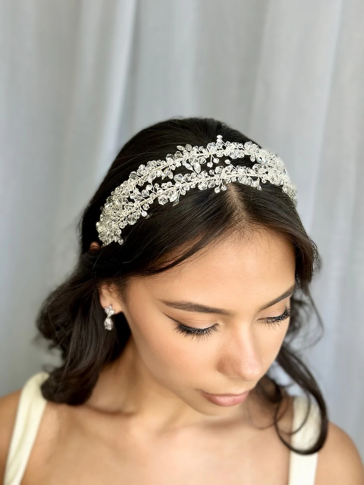 Designed to feel ultra-lightweight and comfortable from ceremony to dancefloor, this bridal headband is also adjustable to suit your styling. Wear the twin rows closer together for a sleek, polished finish, or gently spread them wider to create a more statement, crown-like effect.