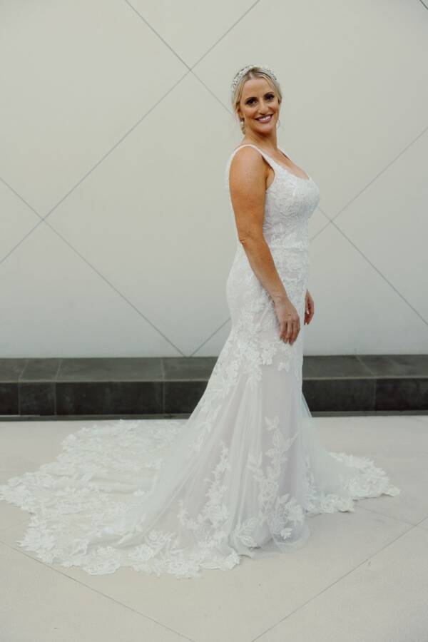 This gown is floor stock and has been tried on and is sold as is. Please check your measurements carefully, we do not offer refunds on sale or discontinued items for change of mind or fit is incorrect. Most gowns do need alterations in some way. If you are unsure and require further assistance, please contact us on 02 6652 7000.