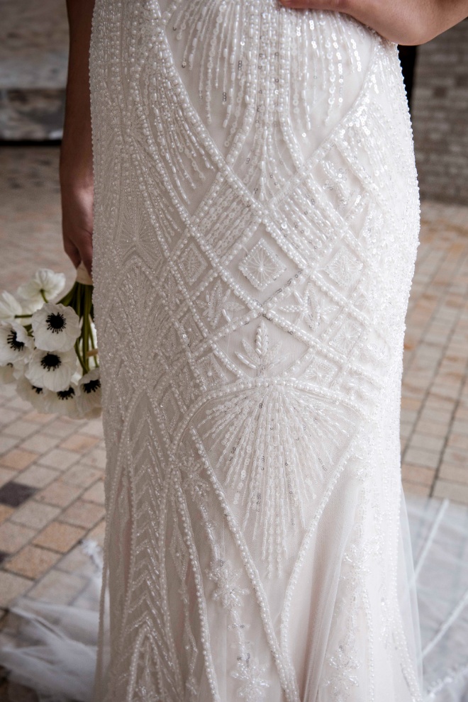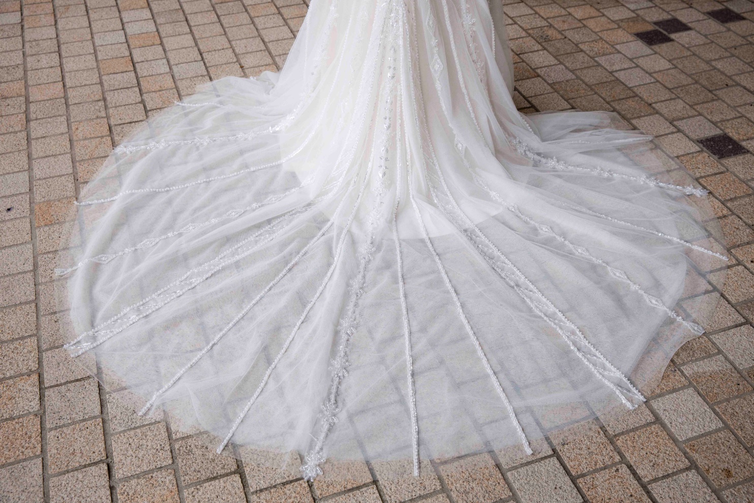 Statement tulle train with beaded placement lines