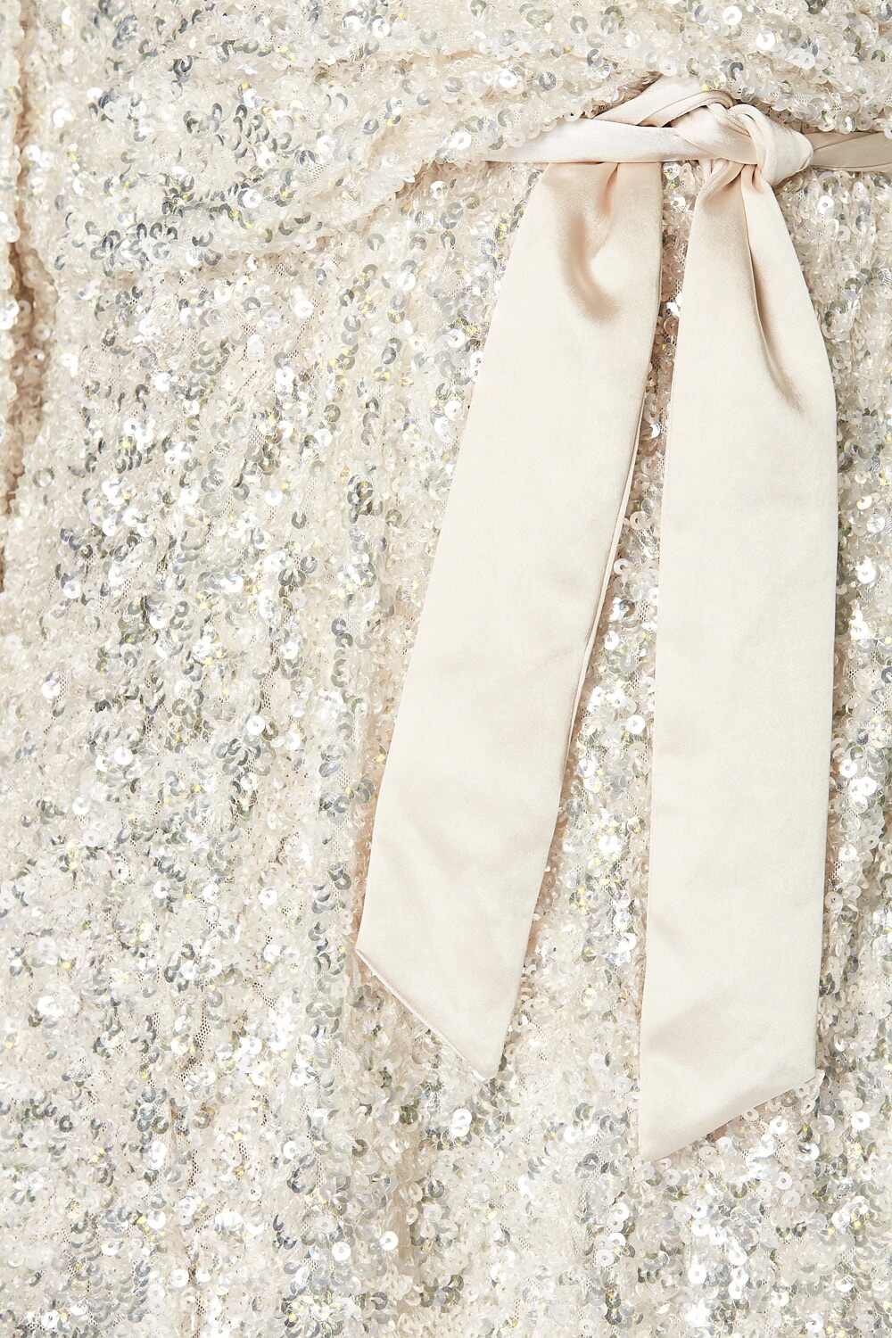 Iridescent medium sequins on stretch-mesh base; fully lined
